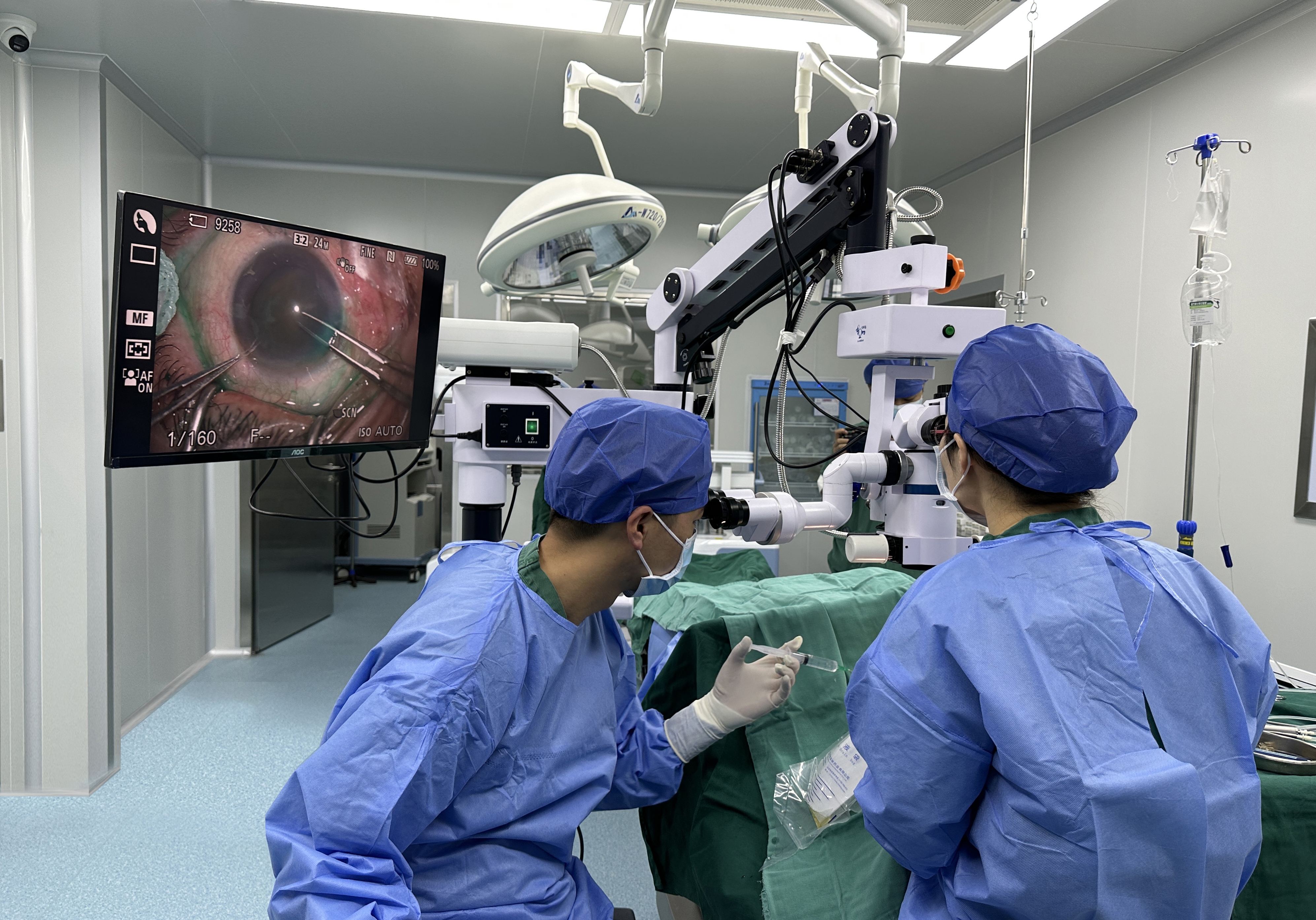 成都市双流区第一人民医院(四川大学华西空港医院)眼科医生吴燕为病人做白内障手术。